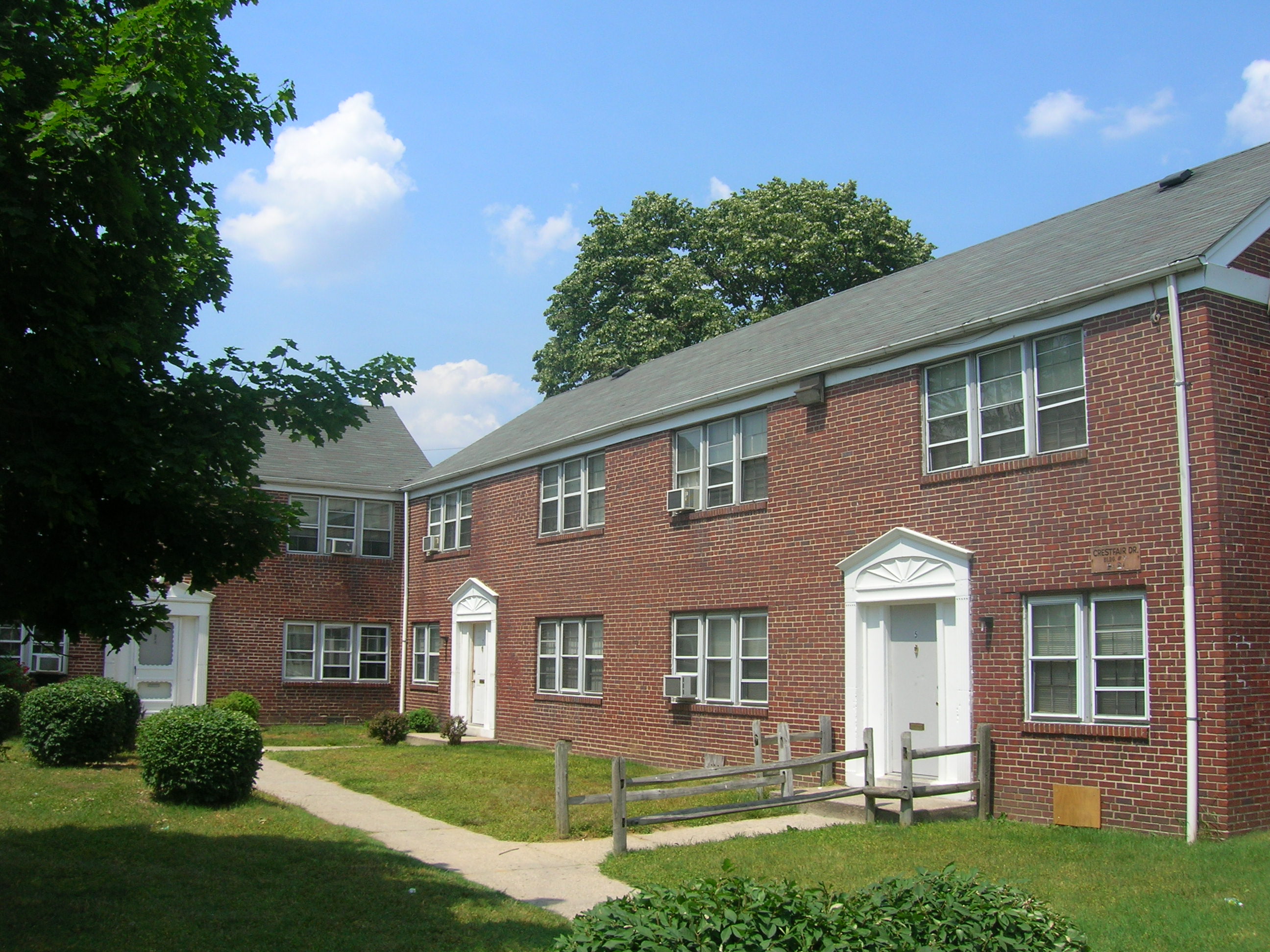 The Crestbury is situated within a few miles of bridges heading into the city of Philadelphia. Built in 1950, it features one- and two-bedroom units overlooking a neighborhood park.