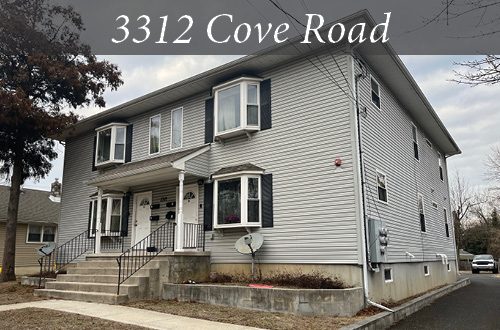 3312 Cove Rd is a 4-unit apartment building located in Pennsauken Township, NJ. The building contains all two-bedroom units that have been updated in recent years with new cabinets, granite countertops, hardwood flooring and renovated bathrooms. The units all feature in-unit washer/dryer combinations and have separate entrances. The parking lot out back is in very good condition and can fit up to 8 cars.